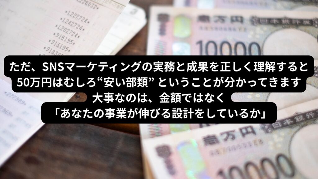 snsコンサル 50万はむしろ原価回収しやすい投資です。